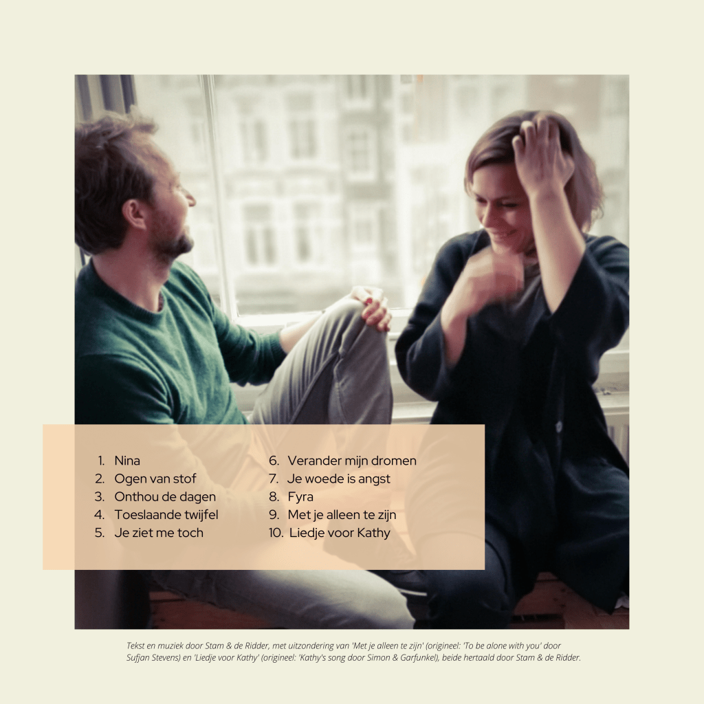Het debuutalbum van Stam & de Ridder is op vinyl beschikbaar. Wil jij een plaat bestellen? Stuur ons een bericht en we zorgen dat jij ‘Je ziet me toch’ ontvangt. Ophalen/levering in overleg.